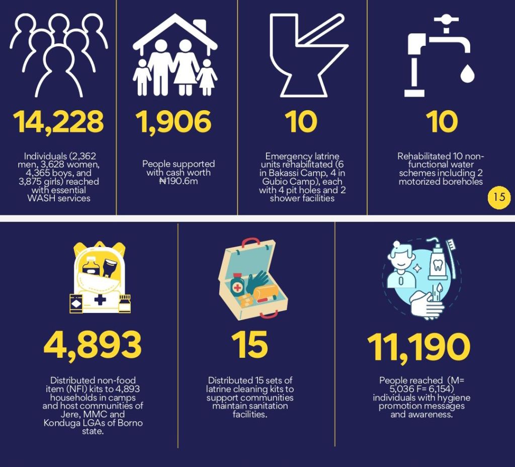 “Our work in 2024, as detailed in this report, underscores our unwavering dedication to empowering vulnerable communities in Borno State, whether they are facing the devastating consequences of conflict or the increasing threats posed by climate change,” said the Executive Director.