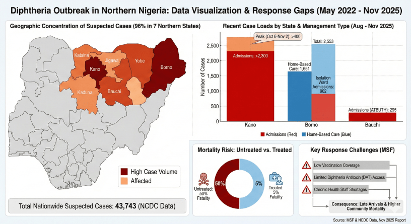 A severe and rapidly expanding diphtheria outbreak is gripping northern Nigeria, overwhelming health facilities and exposing critical gaps in the region’s medical response.